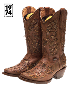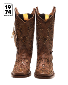 Bota unisex en piel con bordado de alas, color rojo intenso. Carácter con estilo vaquero.